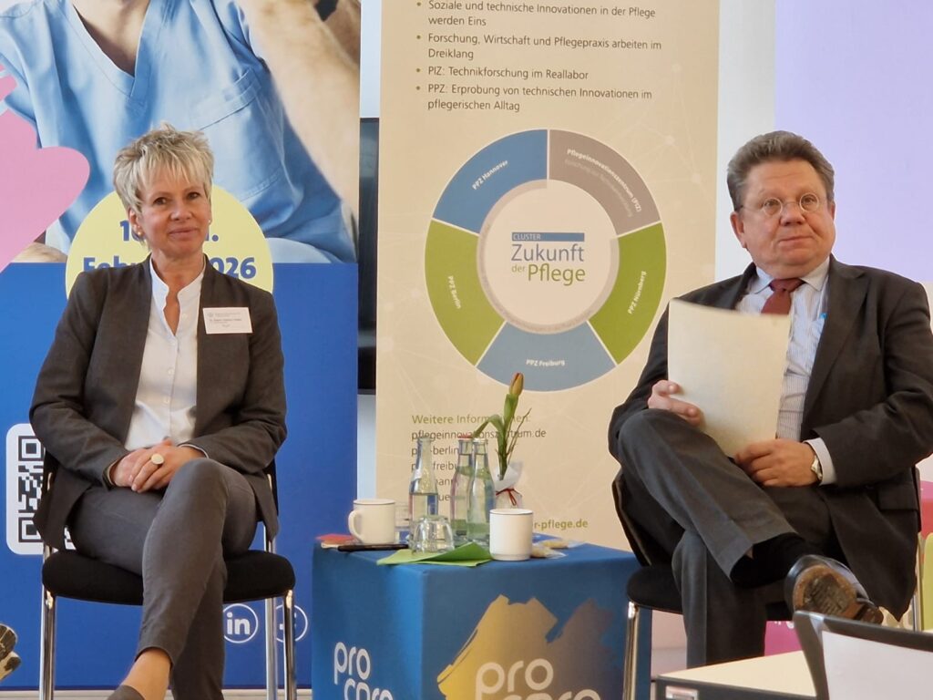 Dr. Andreas Philippi, Niedersächsischer Minister für Soziales, Arbeit, Gesundheit und Gleichstellung, übernimmt – wie bereits 2025 – erneut die politische Schirmherrschaft der Pro Care. In seiner Ansprache hob er den landesgeförderten Einsatz wichtiger Zukunftstechnologien hervor, darunter Voize, ein digitales Sprachassistenzsystem für die Pflegedokumentation, sowie der soziale Roboter Navel, der derzeit im Rahmen eines Pilotprojekts in einer Pflegeeinrichtung in Hannover erprobt wird.