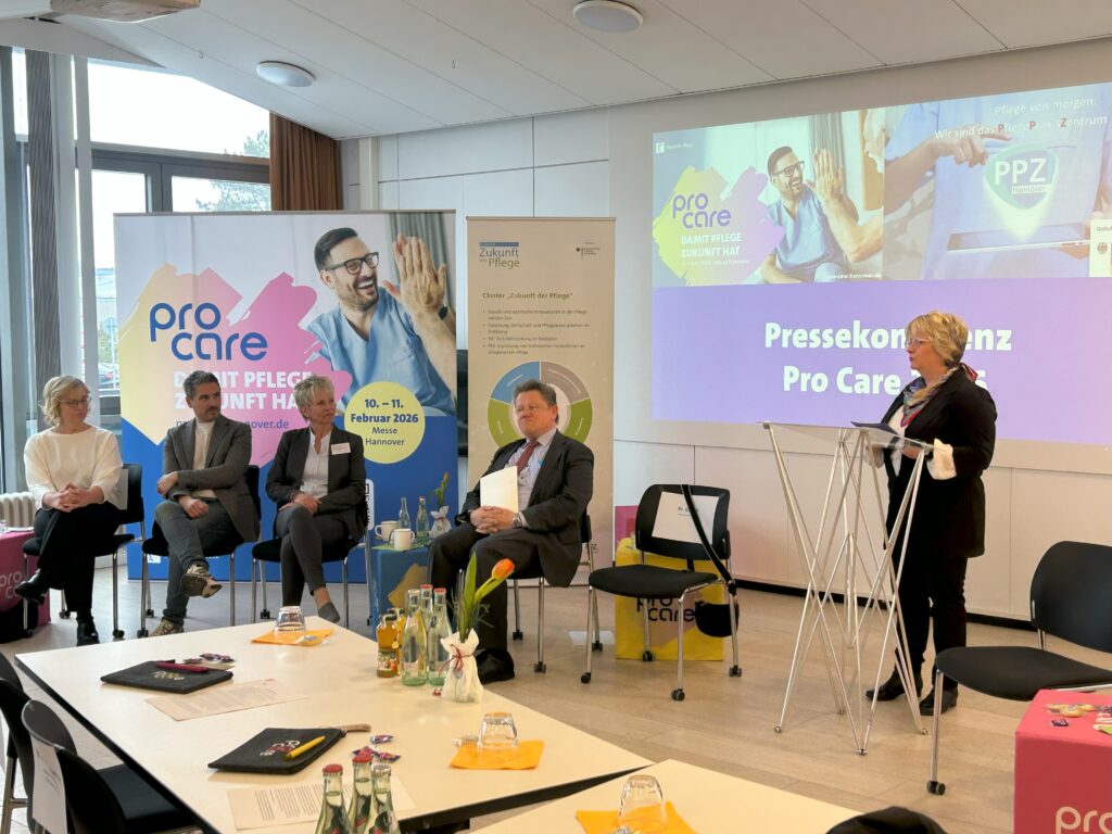 Am Mittwoch, dem 4. Februar 2026, bot der Experimentierraum des Pflegepraxiszentrums (PPZ) Hannover den passenden Rahmen für die Pressekonferenz zur bevorstehenden Pflegefachmesse Pro Care. Die Verantwortlichen der Messe präsentierten Vertreterinnen und Vertretern aus Politik, Pflegepraxis und Wirtschaft zentrale Inhalte sowie erste Ausblicke auf die Messe, die am 10. und 11. Februar 2026 zum zweiten Mal in Hannover stattfindet.