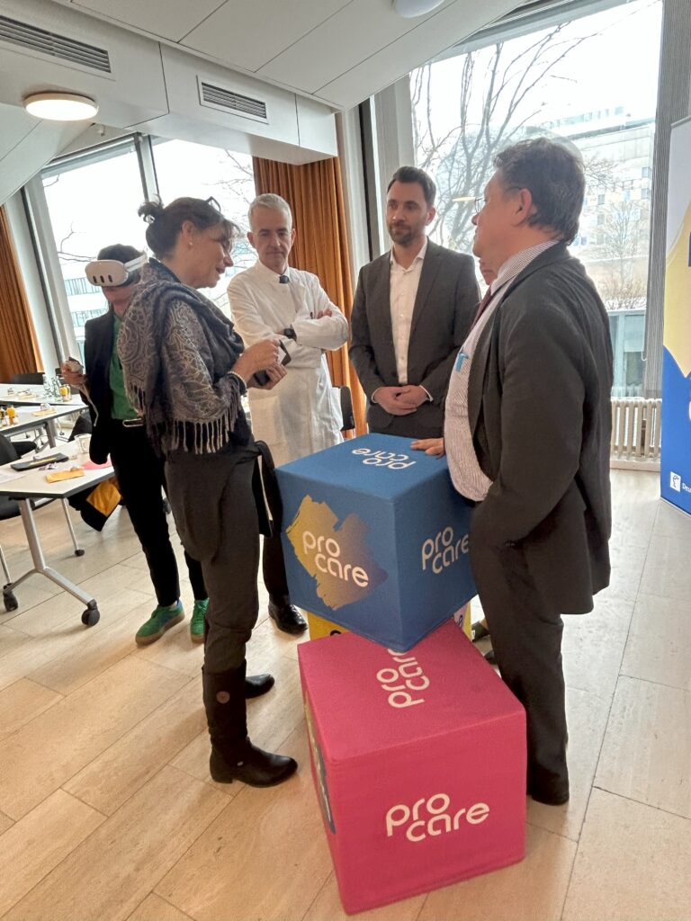 Nach den Impulsstatements bot das anschließende Get together Raum für O Töne, lockeren Austausch und Vernetzung. Zudem erhielten die Gäste direkte Einblicke in die im Experimentierraum präsentierten digitalen Pflegetechnologien, die den Pflegealltag nachhaltig verbessern können und – neben weiteren spannenden Lösungen – auch auf der Pro Care am Stand des Forschungsclusters „Zukunft der Pflege“ in der Messehalle 7 zu sehen sein werden.